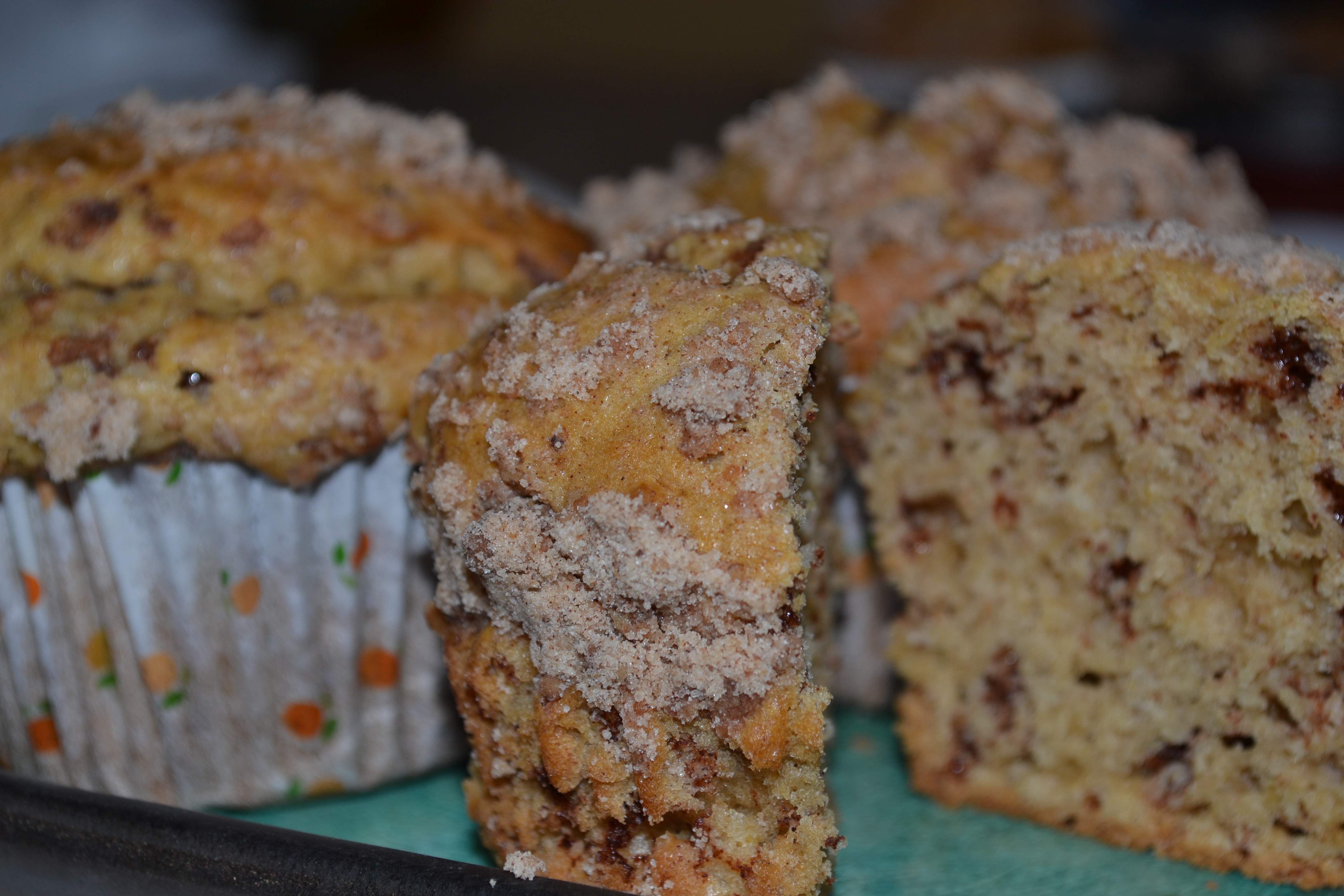 These are spiced just right.I love the crunchy streusel…especially with the addition of the chopped walnuts that give it that nice crunch.