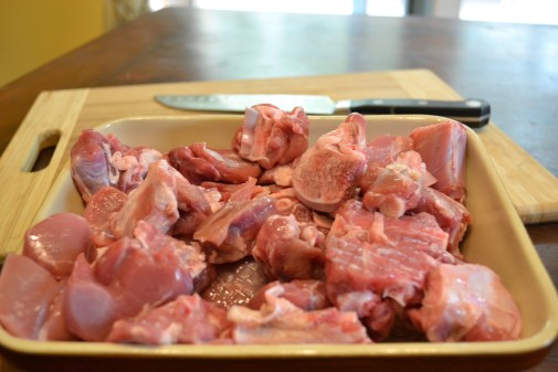 Most often a meat curry would be boneless.I like to use some cuts with the bone in along with the boneless ones.This imparts a lovely flavour to the curry.