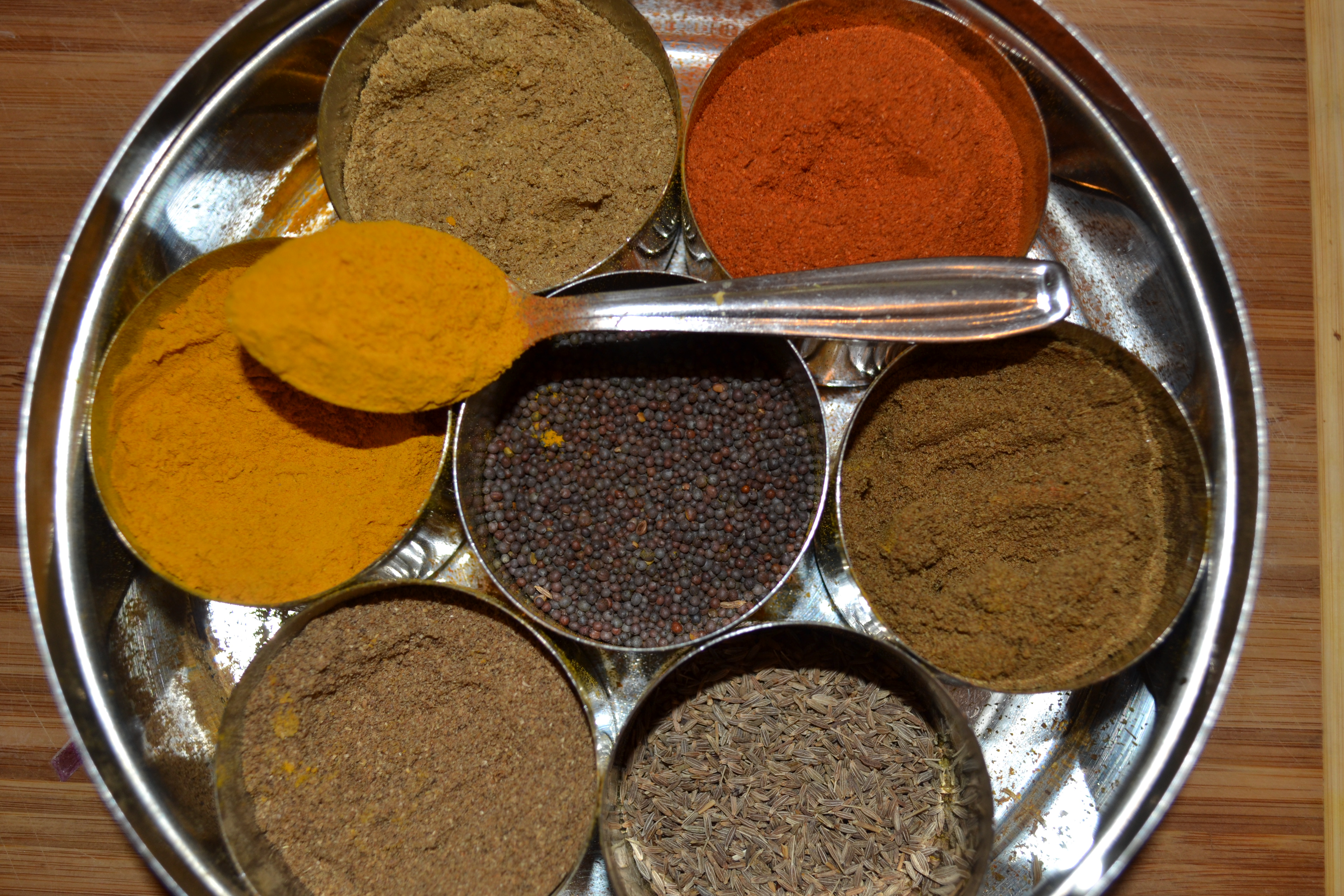 I had one of those lovely Indian spice boxes, got it in the Spice Souk in Dubai. I found that after a while the spices started to smell like each other. For example, the cinnamon began to take on the scent of cumin. Was I doing something wrong? Not using up the spices fast enough? Or maybe in Indian cooking you mix all the spices together in a masala so it doesn’t really matter? Also, I had trouble telling some of the spices apart. I guess the Spice Box takes practice. 😉