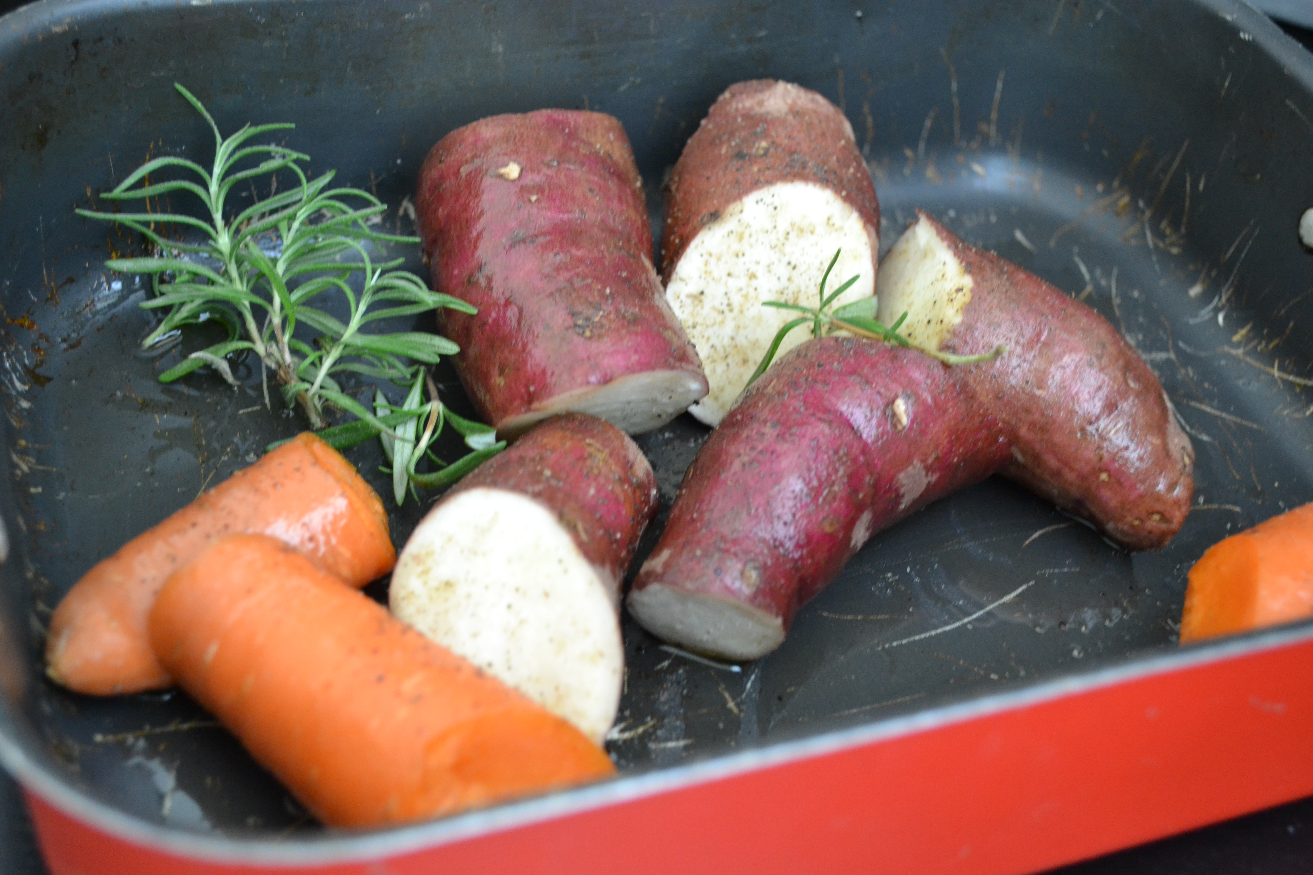 - 4 cups coarsely chopped roasted sweet potato( puree about a cup)