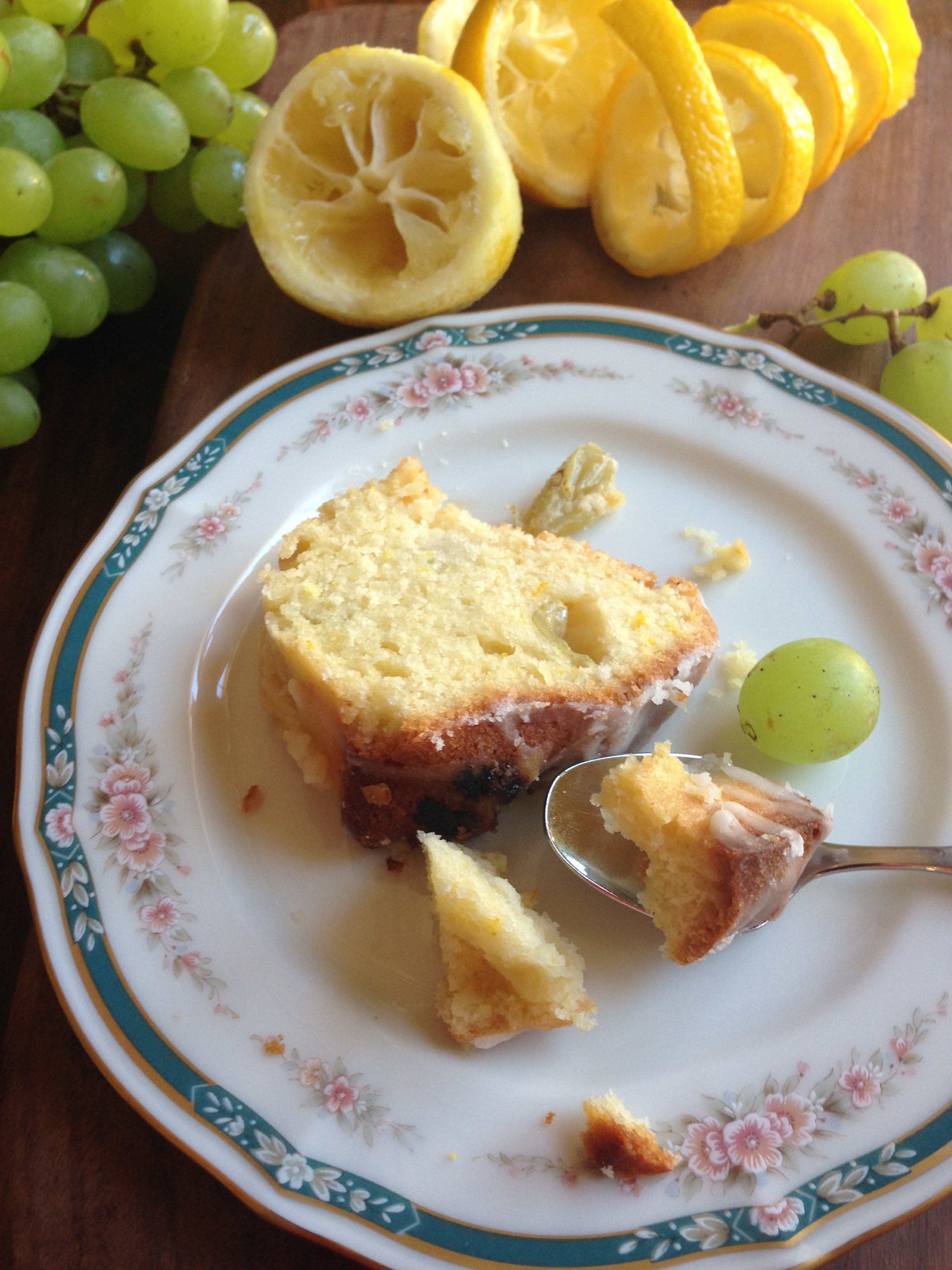 Traditionally most recipes call for red grapes, all though I like the green ones for some tartness and a rustic crunch.The lemon zest adds a burst of flavor and that sure was a key ingredient. I love the fact that the recipe here has very little butter and uses more of Olive oil, producing an unusually light and moist cake. You could bake this in a 9 inch spring form pan, I’ve just used a fluted one to dramatize the cake. Once cooled a simple lemon frosting drizzled over and Voila! The Verdict: This recipe is a keeper! An instant hit with the husband and son. Gorgeous grape and Olive notes evoking memories of a resplendent Tuscan vineyard. Certainly a resonant citrus tang in there. Probably as close to the one I ate too. The flavors in the cake do develop overnight. The perfect way to wake up the next day and have it with a cup of tea. And that’s what I did this morning. Go ahead. Indulge your senses!