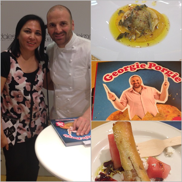 I received a PR invite a couple of weeks ago to  Bloomie’s kitchen.The event was a cooking demo and a book signing by none other than the Australian chef ,restaurateur and television personality best known as the judge on the cooking competition, Masterchef Australia,George Calombaris.”Kindly RSVP at the earliest”,said the email.Now having watched him a million times over on TV ,judging young kids on Junior Masterchef,it was an opportunity that I certainly didn’t want to miss.Well,”Most certainly yes”, was my response back to the PR invite.I would be delighted to watch this maestro in action.While I was excited that he would be cooking up a storm ,it was also my opportunity to pick up his cook book Georgie Porgie and of course get photographed with him.Call it my fan-girl moment if you wish!