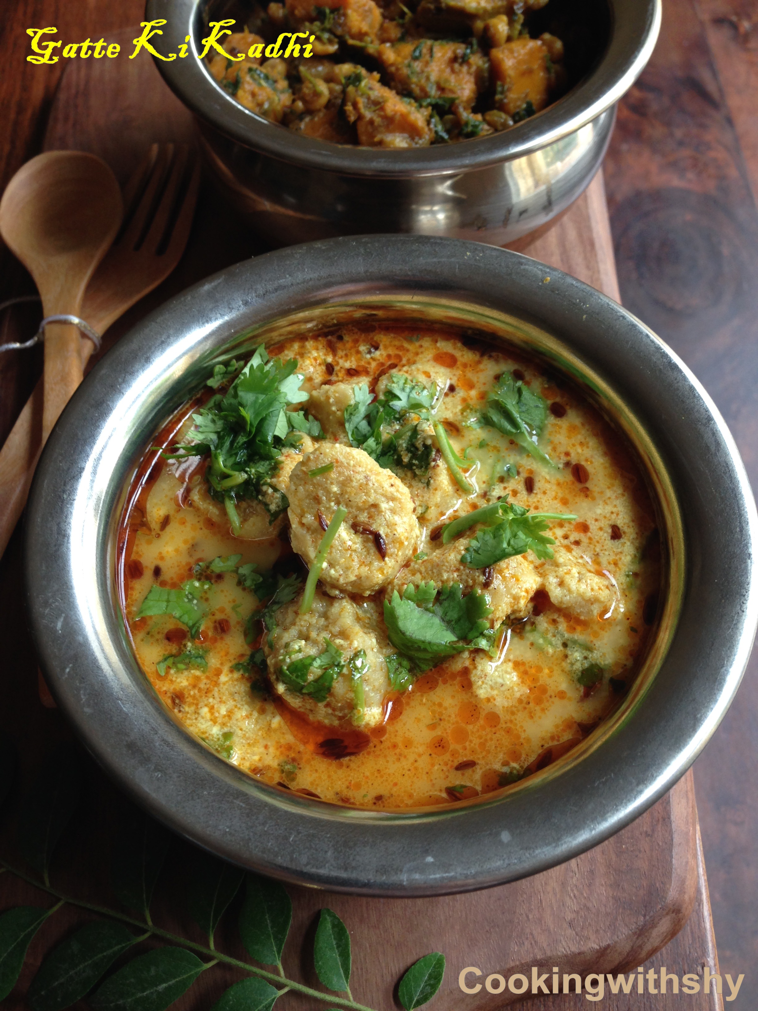 It’s meatless Mondays and Thursdays too, during the week. While the dear husband prefers meat, he’s quite happy to settle for a vegetarian meal a couple of times. Here is a recipe for Gatte Ki Kadhi which is a Rajasthani delicacy. Quite easily a delicious gram flour dumpling in a yogurt based curry.