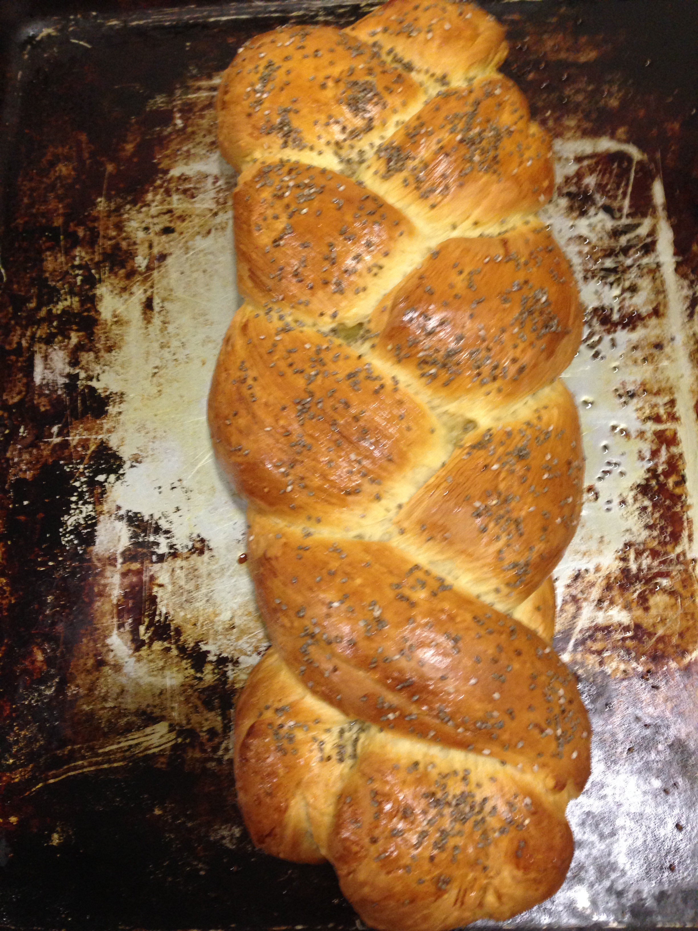 He’s away at a friends and I’ve been baking up a storm tonight. Started off with a batch of double fudge brownies and then was just aching to try this Challah recipe that keeps wanting to be made. I’ve adapted this one from my lovely Kitchenaid cookbook that I received, when I bought my food processor last year. Now the recipe calls for using the dough attachment for kneading ,all though I’ve just used the hand technique. The recipe called for vanilla pods which I’ve substituted with regular vanilla extract and have used chia seeds instead of poppy seeds. You may even use sesame or sunflower seeds if you like.