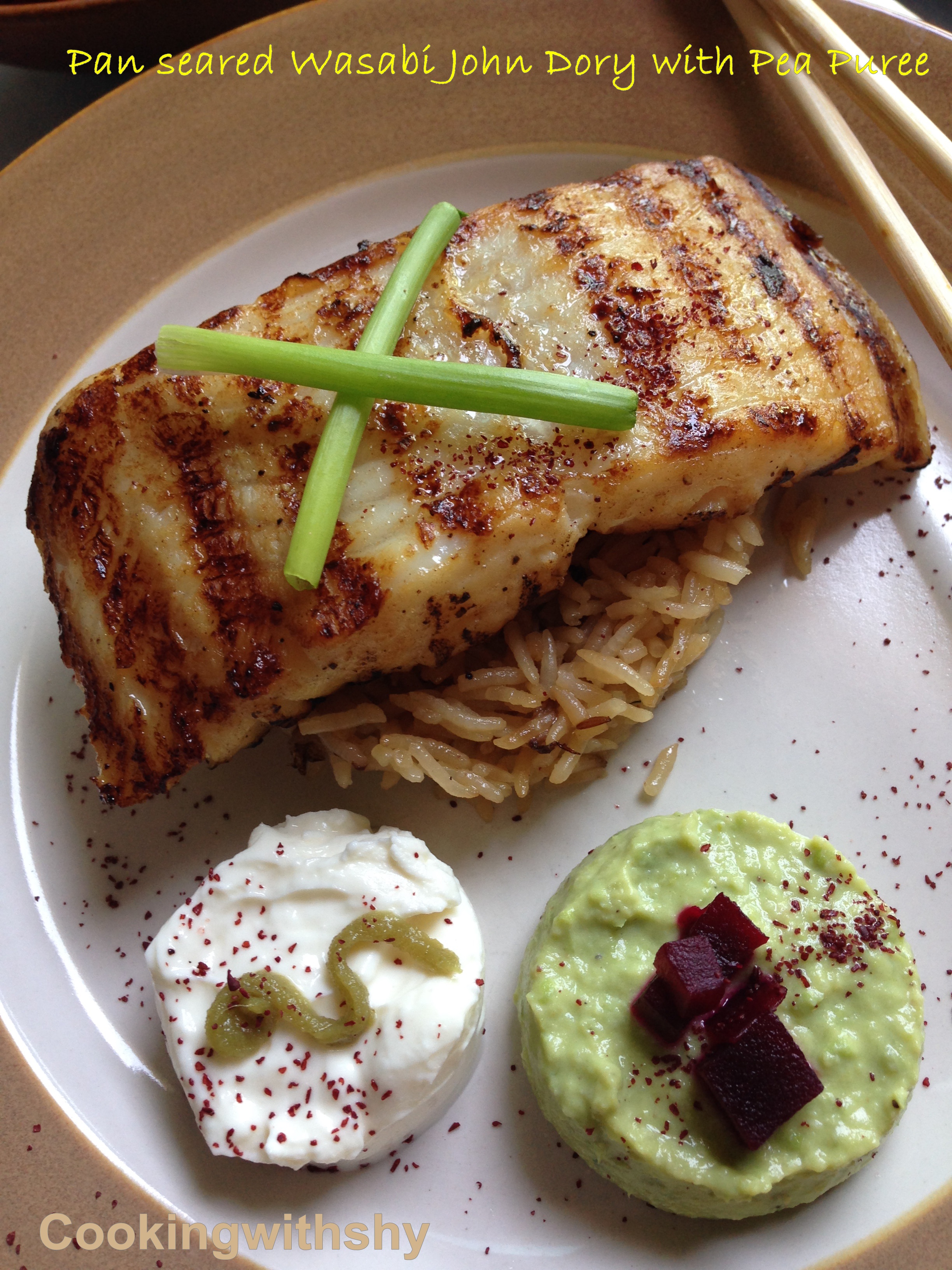I have been cooking fish a lot more these days. This easy recipe for a pan seared fish is great dinner option when time is short and yet one would like to put a nutritious and healthy meal together. I’ve used a fillet of John Dory that I found locally here in Mumbai. However you may substitute it with any other firm white fish if you like. This pairs really well with the pureed peas and the mint Labaneh. I’ve tried to recreate a fusion of Asian flavors with a mild middle eastern twist and it was well appreciated by everyone. The refreshing Mint Labaneh balances off the creamy texture of the Pea Puree really well.
