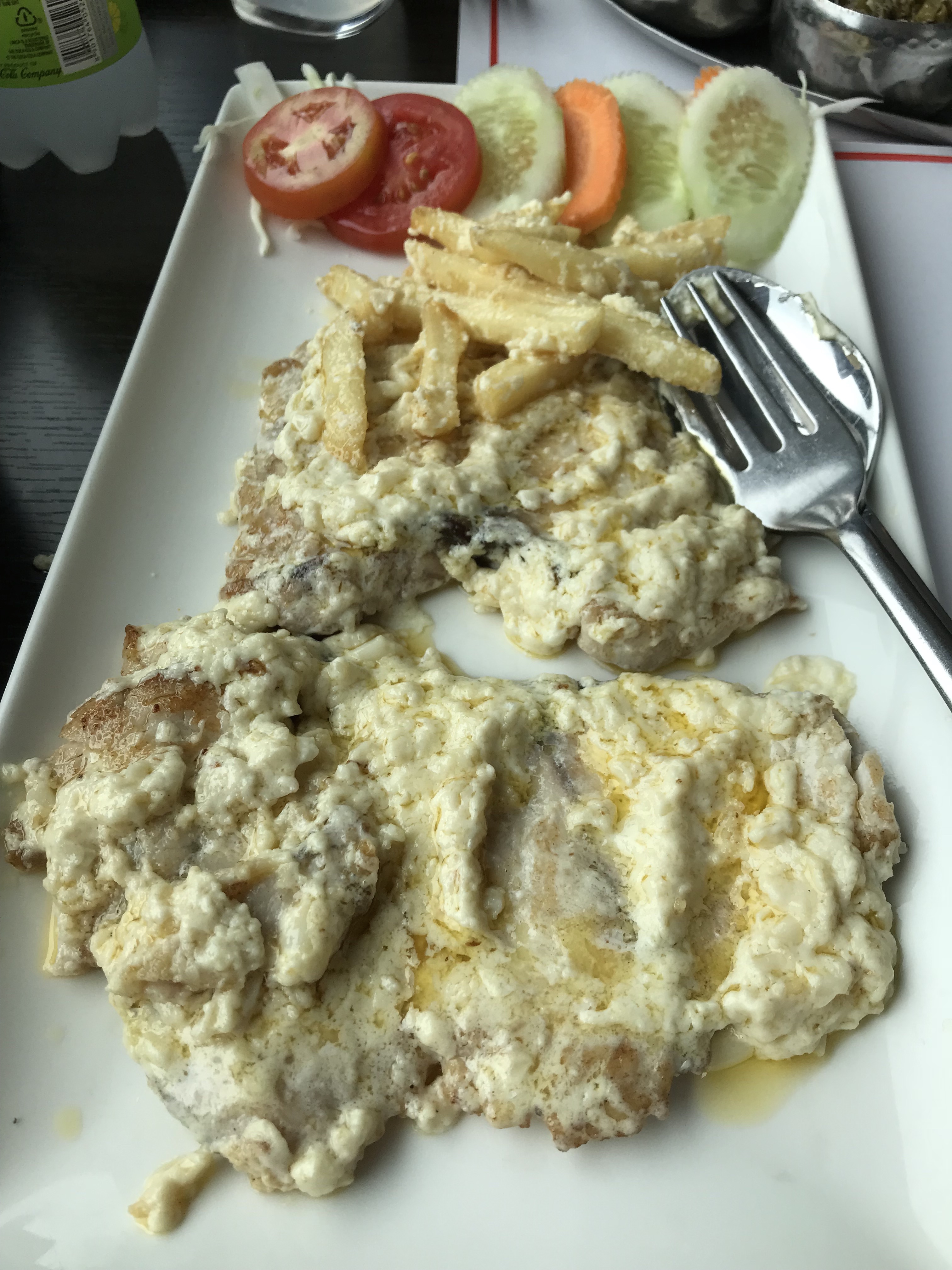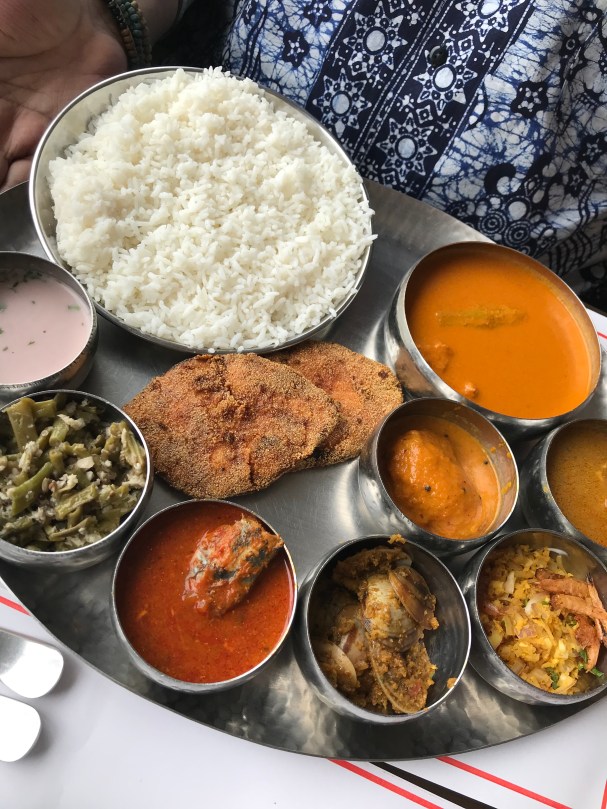 The next day we decided to drive out towards Panjim and checkout Mall De Goa which opened just a couple of years ago. We had not much of a shopping list as all the fresh produce was been reserved for a must visit to the fresh markets in Goa. However the attraction of the mall visit was the Ritz Classic that serves us a delicious Fish Thali at lunch times. While they do have a large A la carte menu as well, the most sought after order at lunch would be the Thali which consists of a various fish curries, fried fish, rice, and some vegetables as a side too. So while the hubs decided to devourer this I choose a Fried Chonak (local red snapper) sautéed in garlic and butter as my main course. I tell you, I’m totally sold out on this fish.
