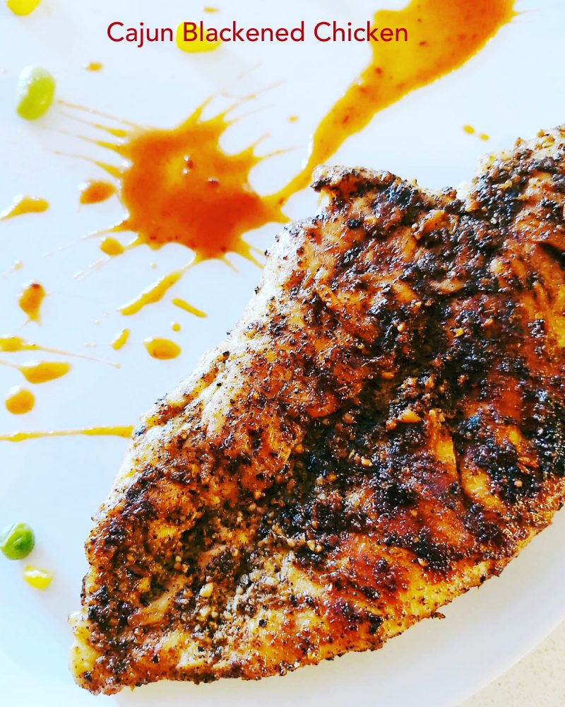 The dark or charred look literally refers to a fabulous blend of spices that originated in Louisiana and traditionally grilled on a cast iron skillet where the chicken is seared under high heat.