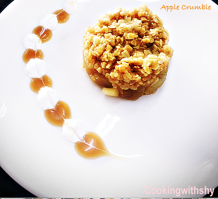 Well I will leave that for another post perhaps and leave you with a wonderful recipe for this Apple crumble. Sliced fresh apples tossed with cinnamon and baked under a crumble made up of Oats, flour, butter and brown sugar make up for this insanely easy and delicious dessert.