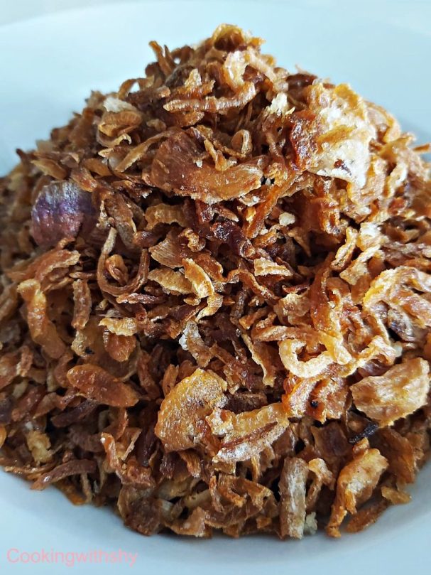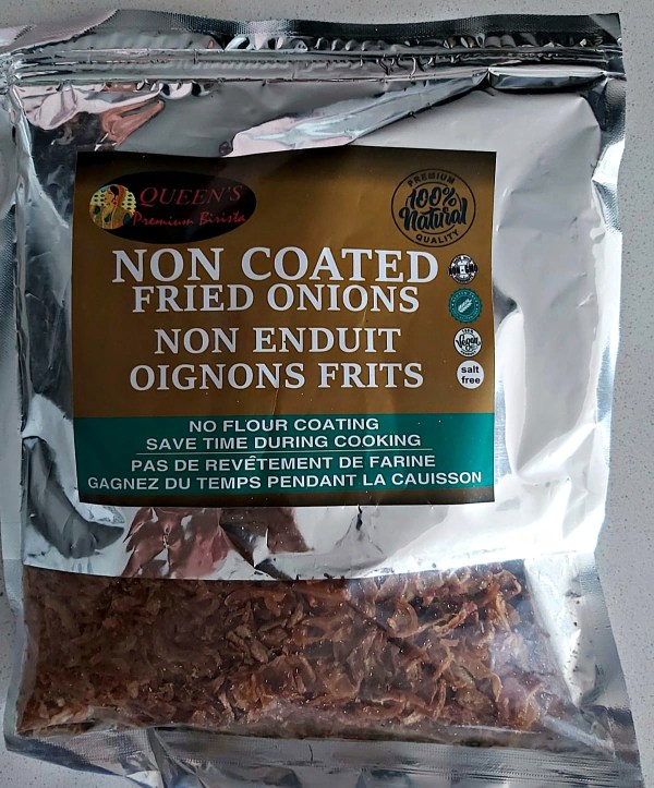 Disclosure: I received a complimentary package of fried Onions from Queen’s barista for recipe development purposes as per mutual agreement between us I have incorporated the use of their product as a garnish in the recipe above.