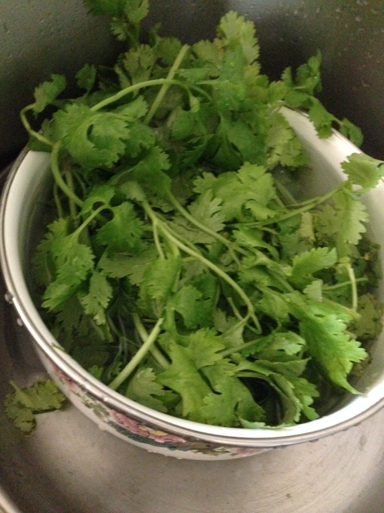 I just pulled out my last jar of basil pesto from the freezer which I made last year. I am one of those who either love or hate cilantro – unfortunately I am one of the “haters”. I have tried to like it, even grew it a couple of times… I know I could sub parsley for it but would probably change the taste in this case.