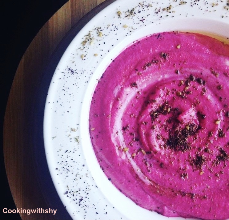 How about jazzing up your favorite Hummus recipe with the goodness of beetroot? I’ve used some beetroot puree into a batch that I made up earlier this week.The beetroot adds a wonderful vibrant hue to the hummus, lends a delicate flavour too and looks absolutely stunning.