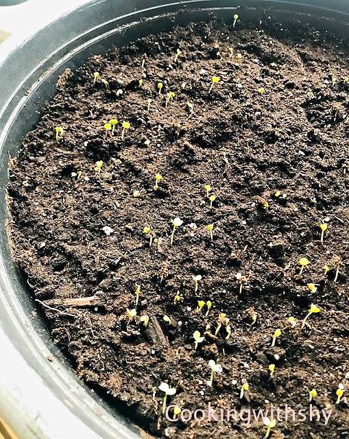 I had been contemplating growing microgreens for awhile now, as they often come in handy for plating and garnishes. The best part of growing microgreens is that you may use some of your pantry staples such as mustard, fenugreek, coriander or sunflowers seeds. I like to grow them in some organic potting soil that I use growing my herbs. However you may try growing them hydroponically too.