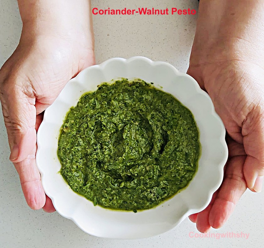 Move over pine nuts and basil as fresh coriander and toasted walnuts blend together to make this wonderful and easy pesto. Traditional Pesto also called Pesto Alla Genovese originates in Genoa,Italy and consists of pine nuts, salt, basil leaves , minced garlic, Parmesan cheese and olive oil. Also quite strictly this pesto is pounded with a mortar and pestle to achieve the desired results. However a small food processor works great too. In this modern version the pine nuts are substituted with walnuts and the star ingredient is fresh coriander leaves or cilantro and just some basil leaves thrown in for good measure. All the ingredients compliment each other really well and trust me you will be tempted to eat this pesto by the spoonful. Here is my recipe for this delightful pesto. I have wonderful memories fine tuning this recipe for an event at the college, I taught at some years ago. With quite a few trials and errors we perfected this recipe and now it’s a go-to recipe in my kitchen. This is …